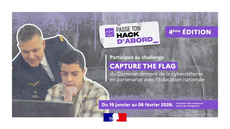 Le ministère des Armées (COMCYBER), en partenariat avec la direction générale de l’enseignement scolaire (Dgesco), organise un challenge en ligne de type « Capture the Flag » : Passe ton Hack d’abord.