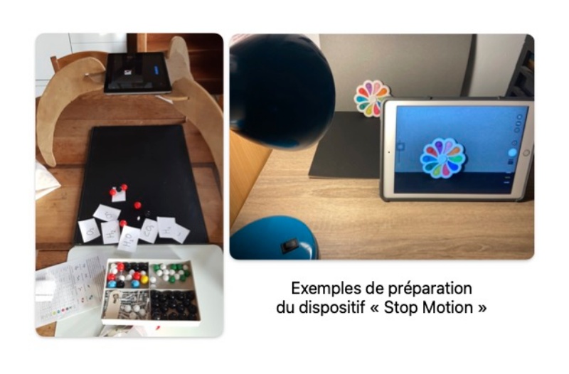 Chaque groupe, équipé d’une tablette, a donc réfléchi à la mise en scène des objets pour répondre à la question donnée, a écrit son scénario, a réalisé son film avec l’application Stop Motion Studio et a créé une page descriptive à la manière du cinéma muet sur un modèle confié par l’enseignant dans Keynote.